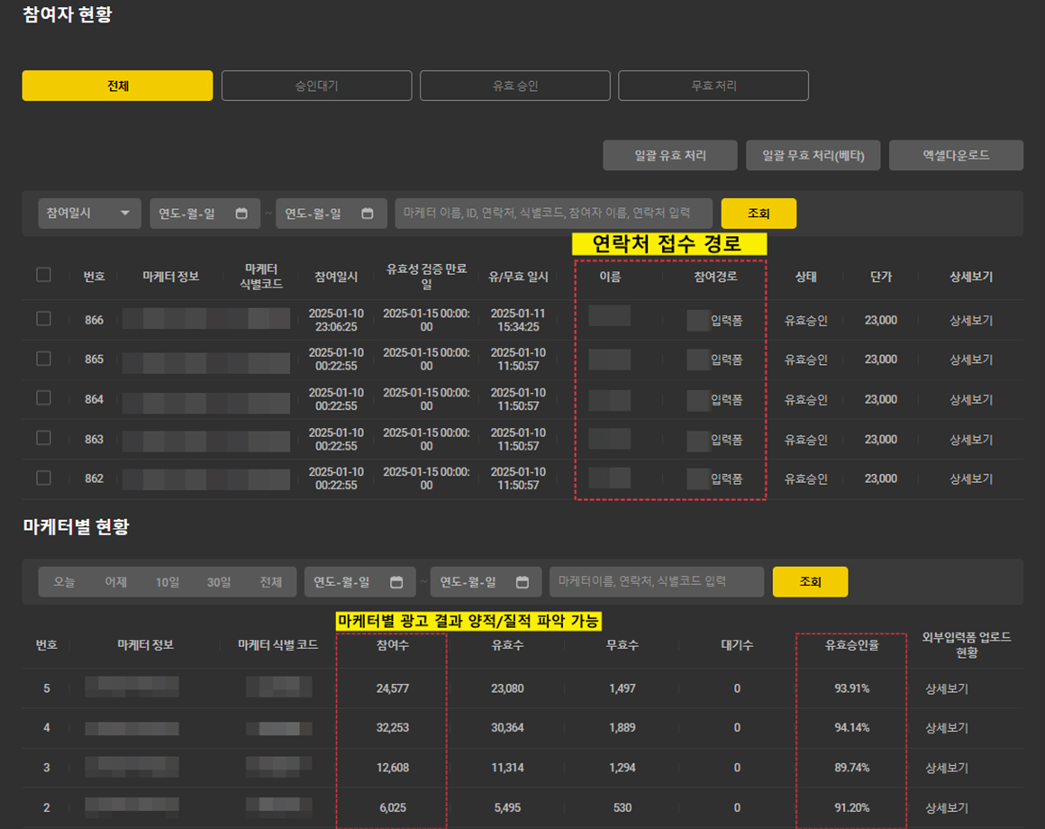 - 마케터별 전환 단가 측정 가능 (별도 스크립트 삽입시)